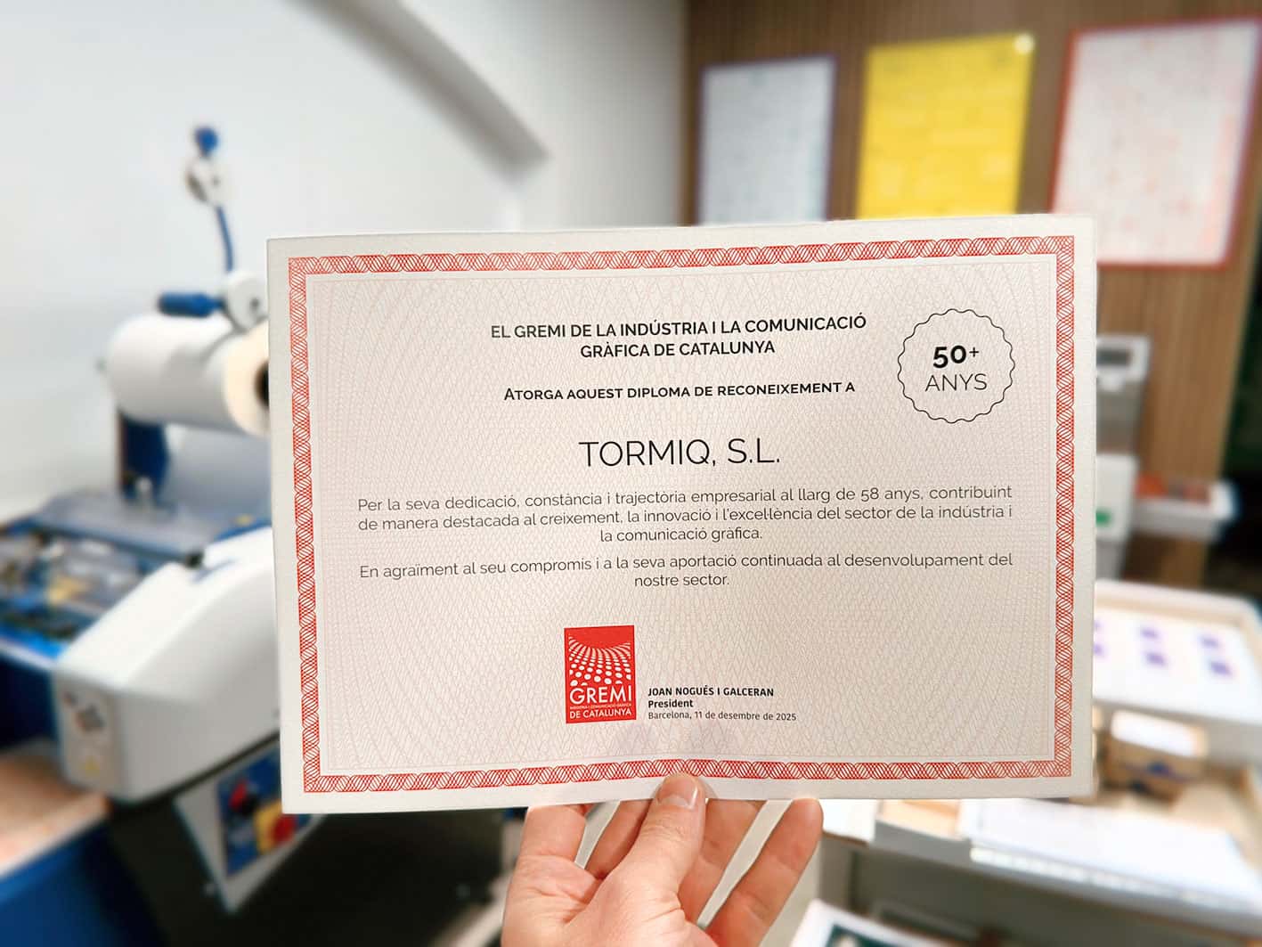 Más que un premio, para nosotros es un recordatorio del oficio. Cuando nuestro padre fundó Tormiq en 1968 en el corazón de Sarrià, seguramente no imaginaba todos los cambios tecnológicos que viviría el sector: de la tipografía y el offset tradicional a la impresión digital de última generación.